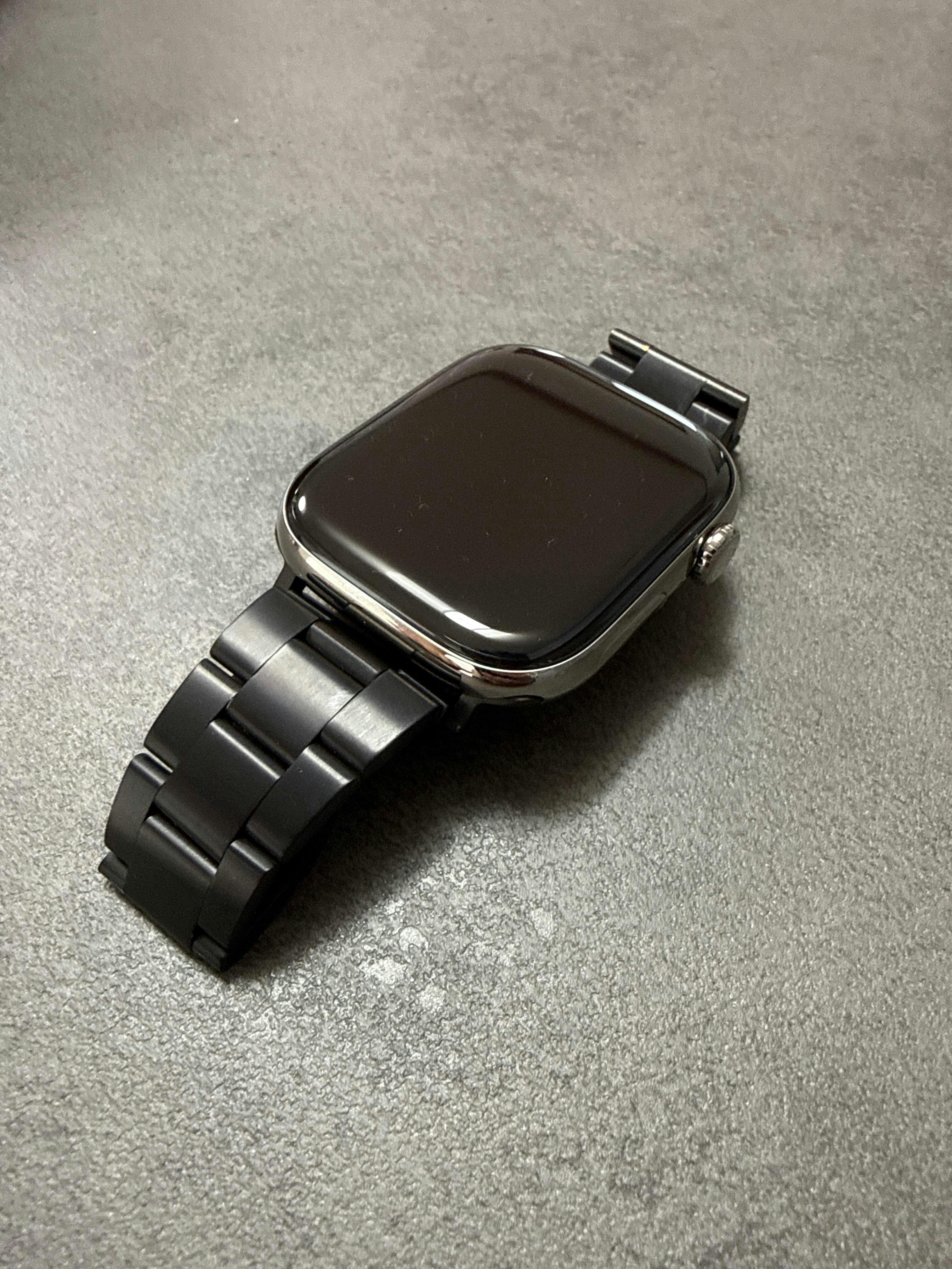 A simple and stylish stainless steel Apple Watch band.