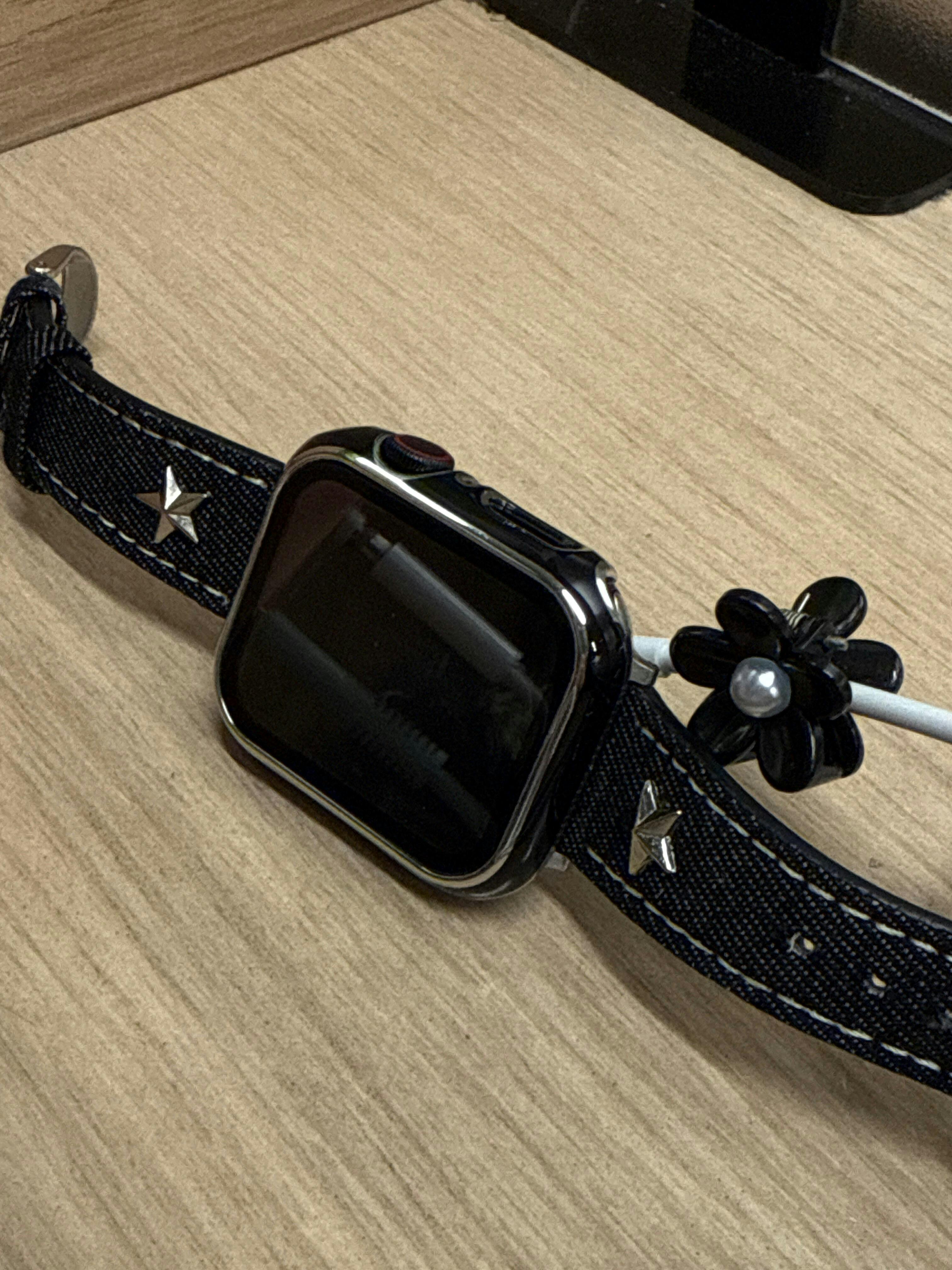 デニムレザーにスタッズがポイントになったアップルウォッチバンドです。