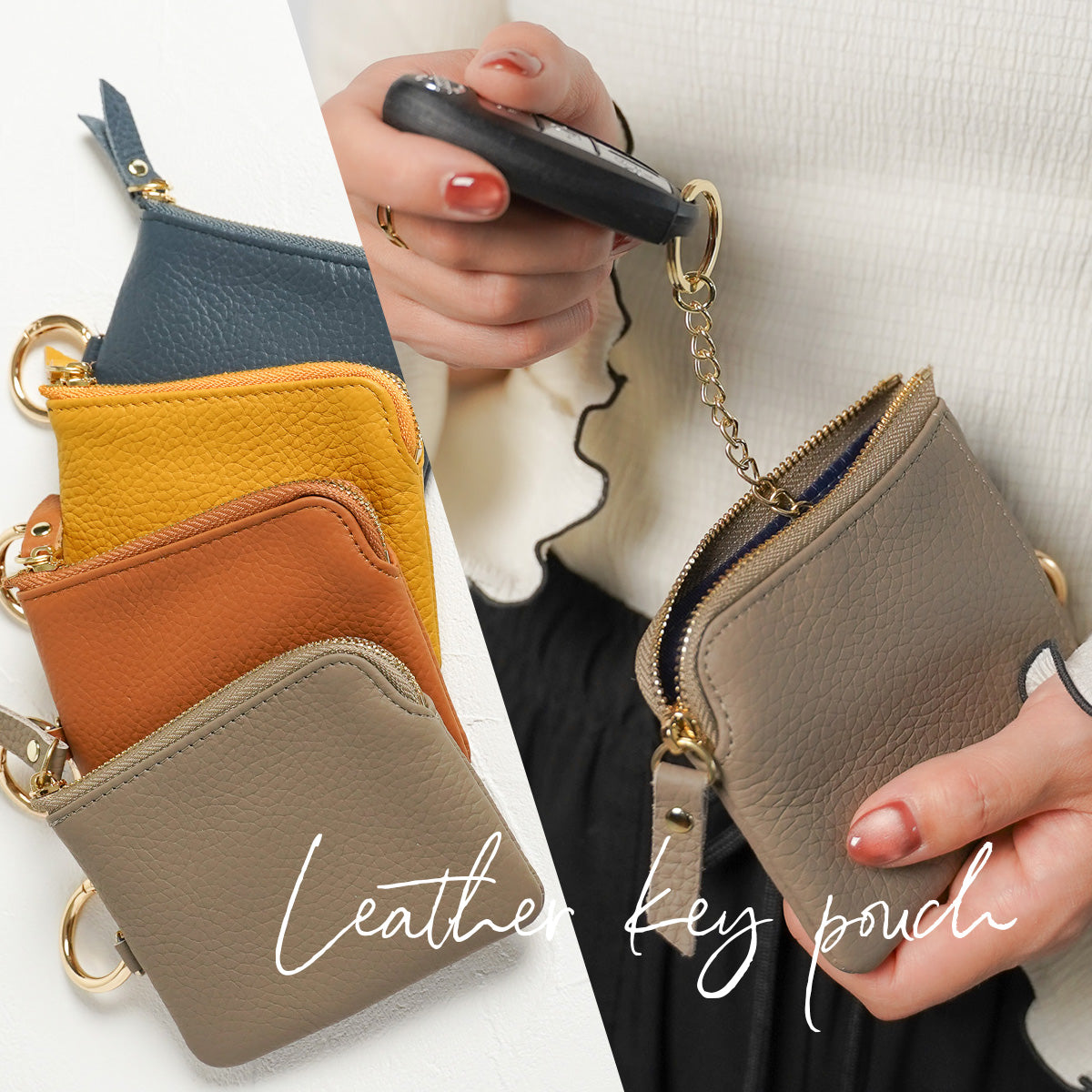 キーポーチ レザー カラビナリング付き 本革 マルチポーチ