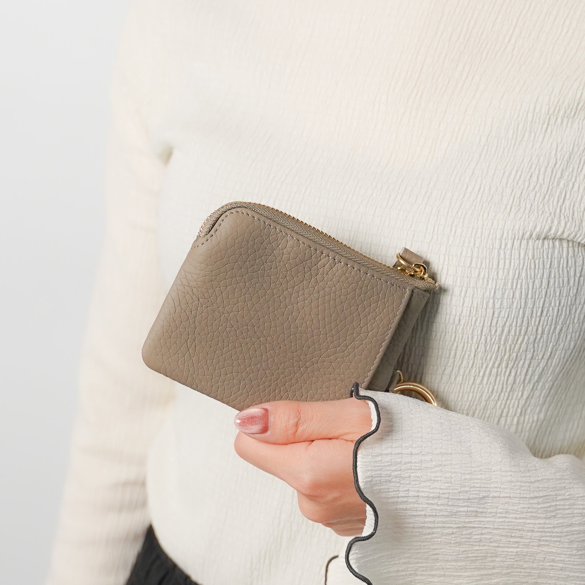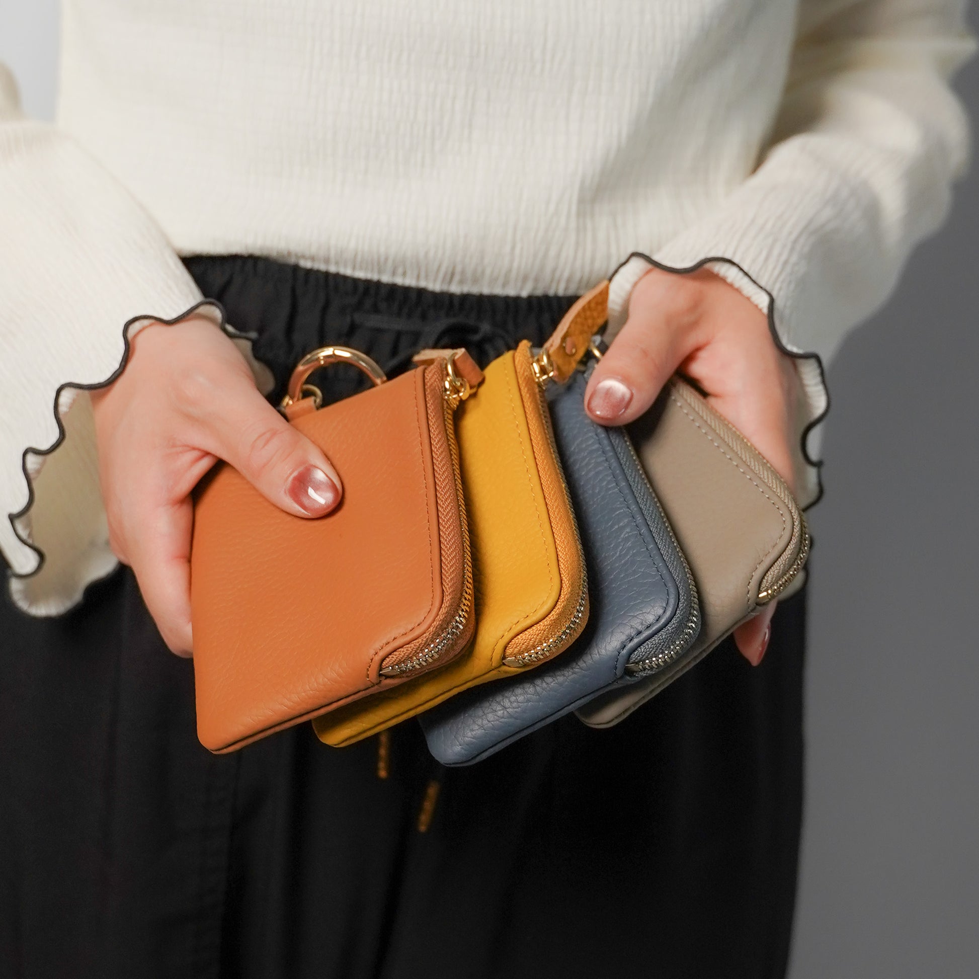 車の鍵や免許証も入る大きさなので、お札や小銭、必要なカードも入れたらこれだけで外出可能!
