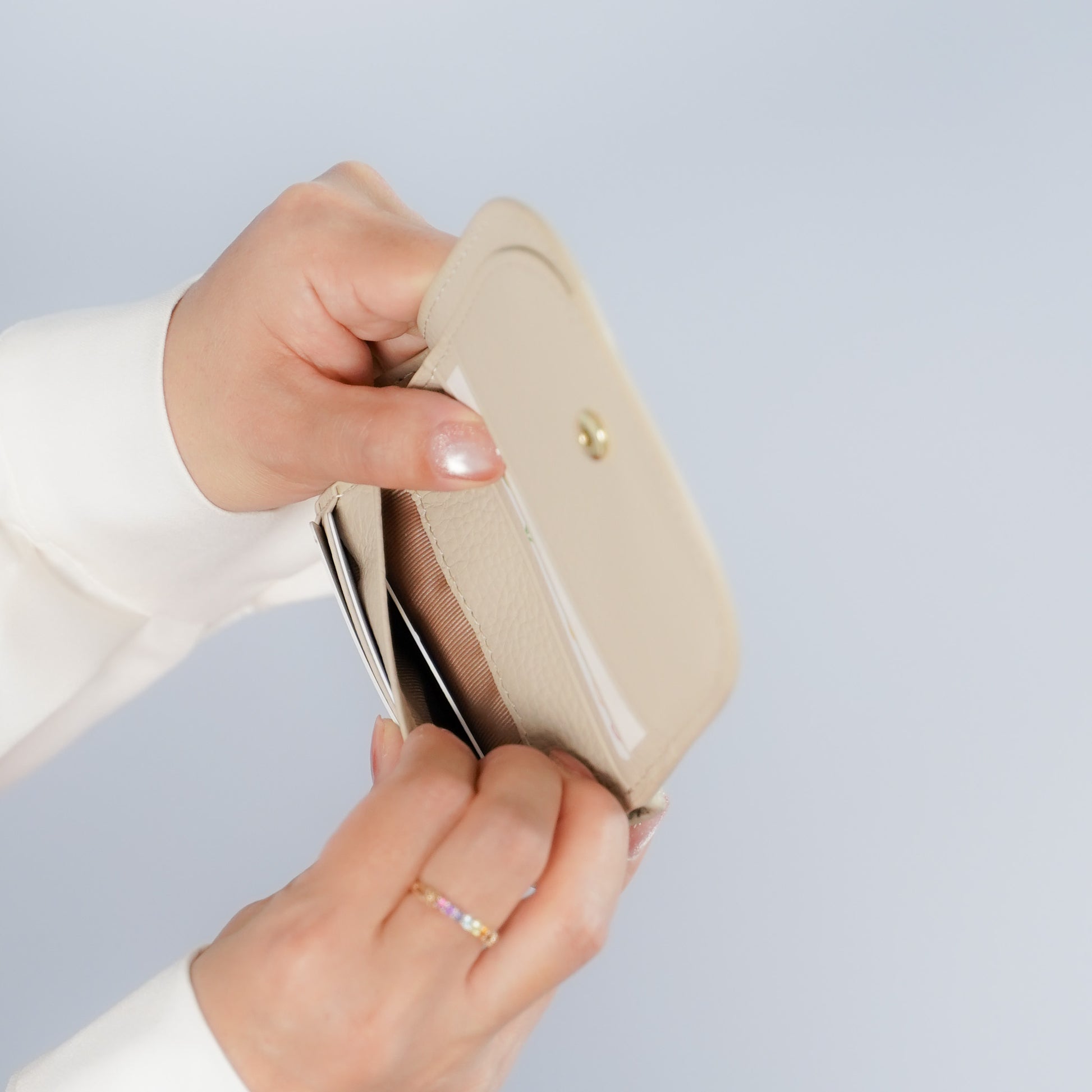 薄くてコンパクトなサイズ感ながら、収納力も十分な二つ折り財布です。