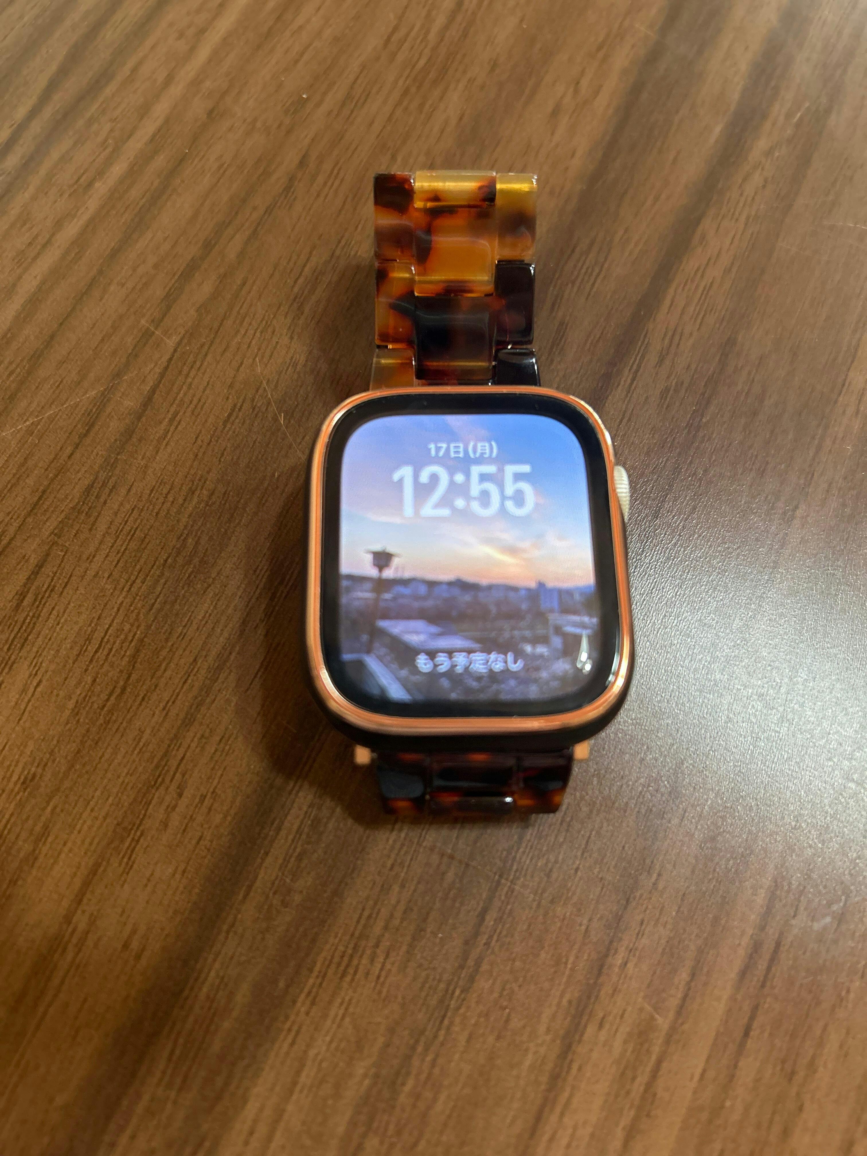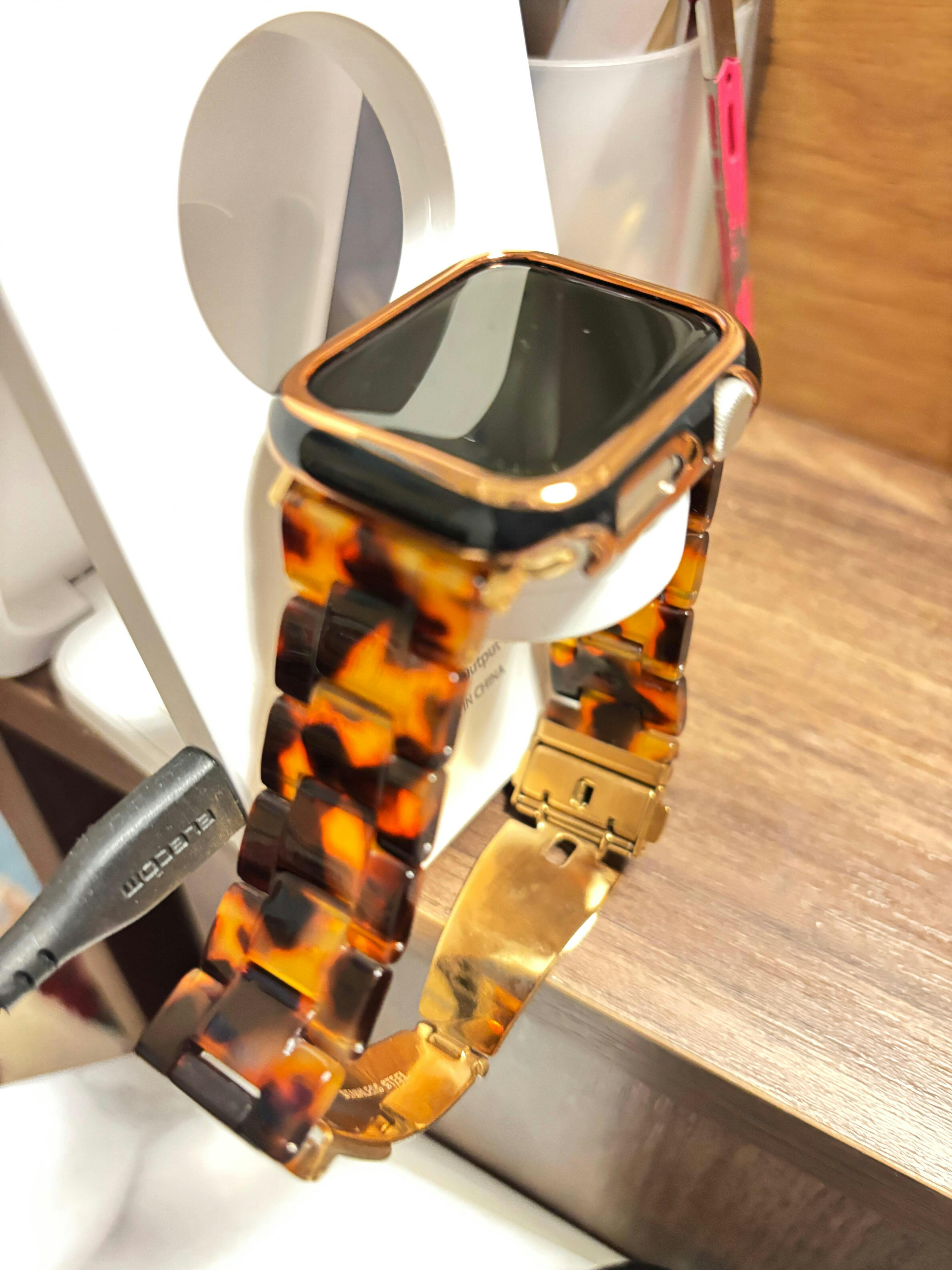 マーブル模様がかわいい樹脂製アップルウォッチバンドです。