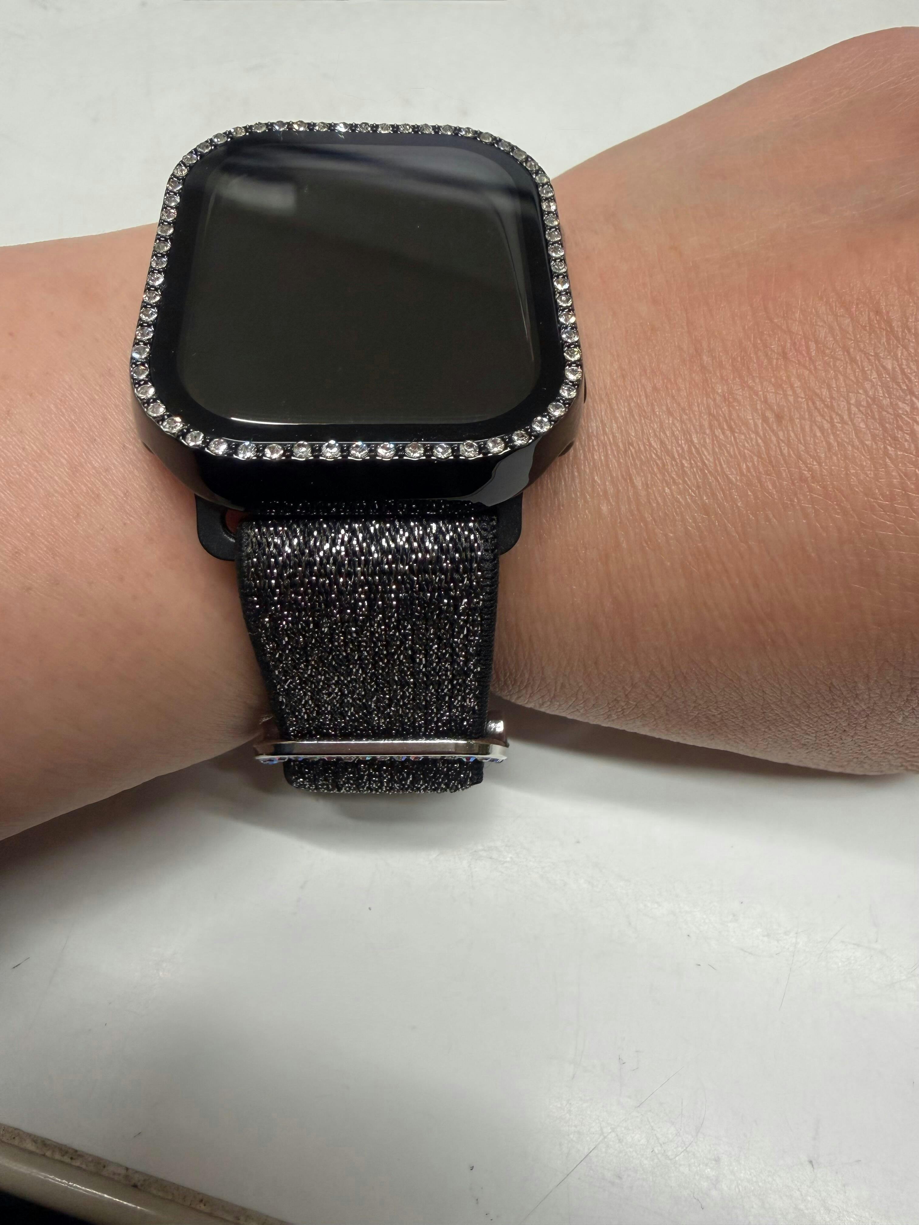 ラメ入りでキラキラ輝く、ナイロン製のアップルウォッチバンドです。