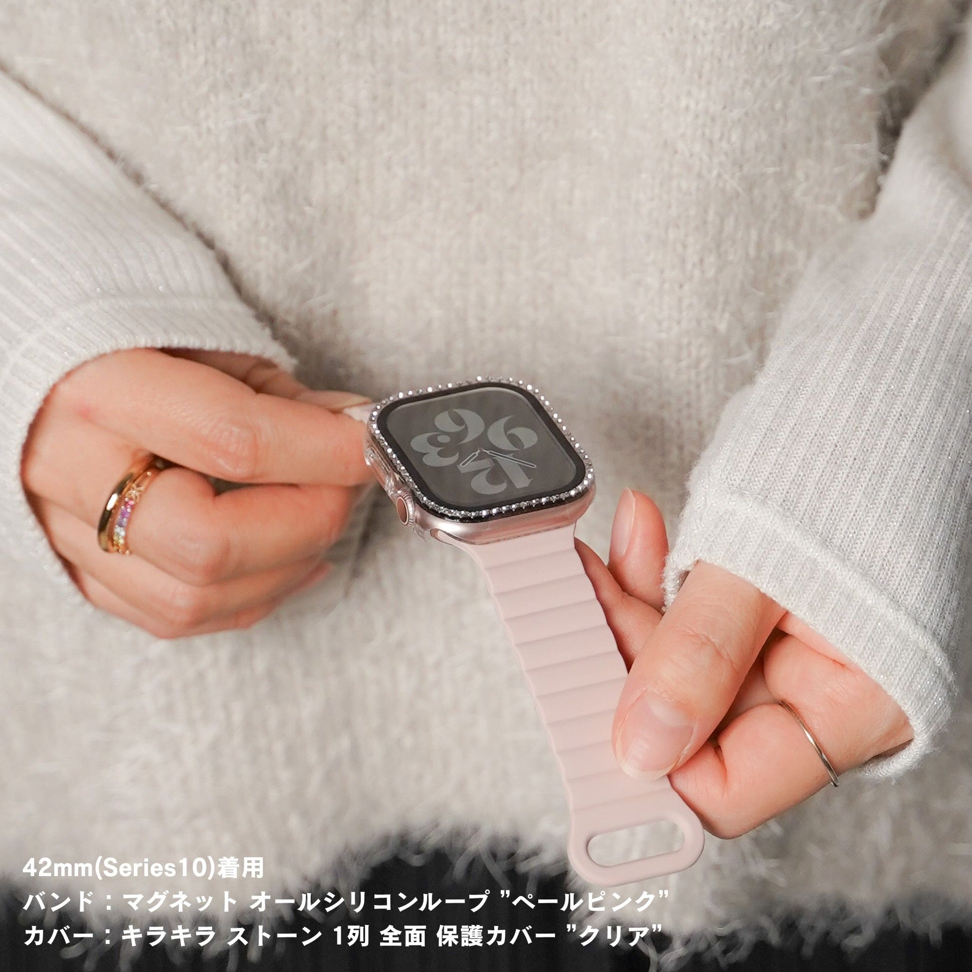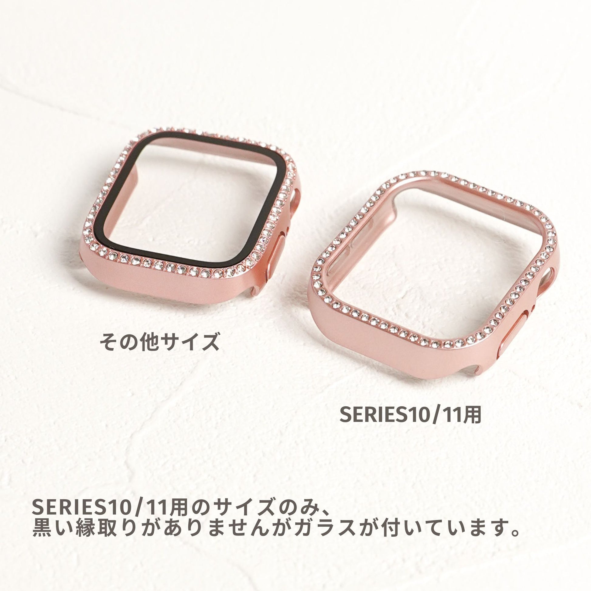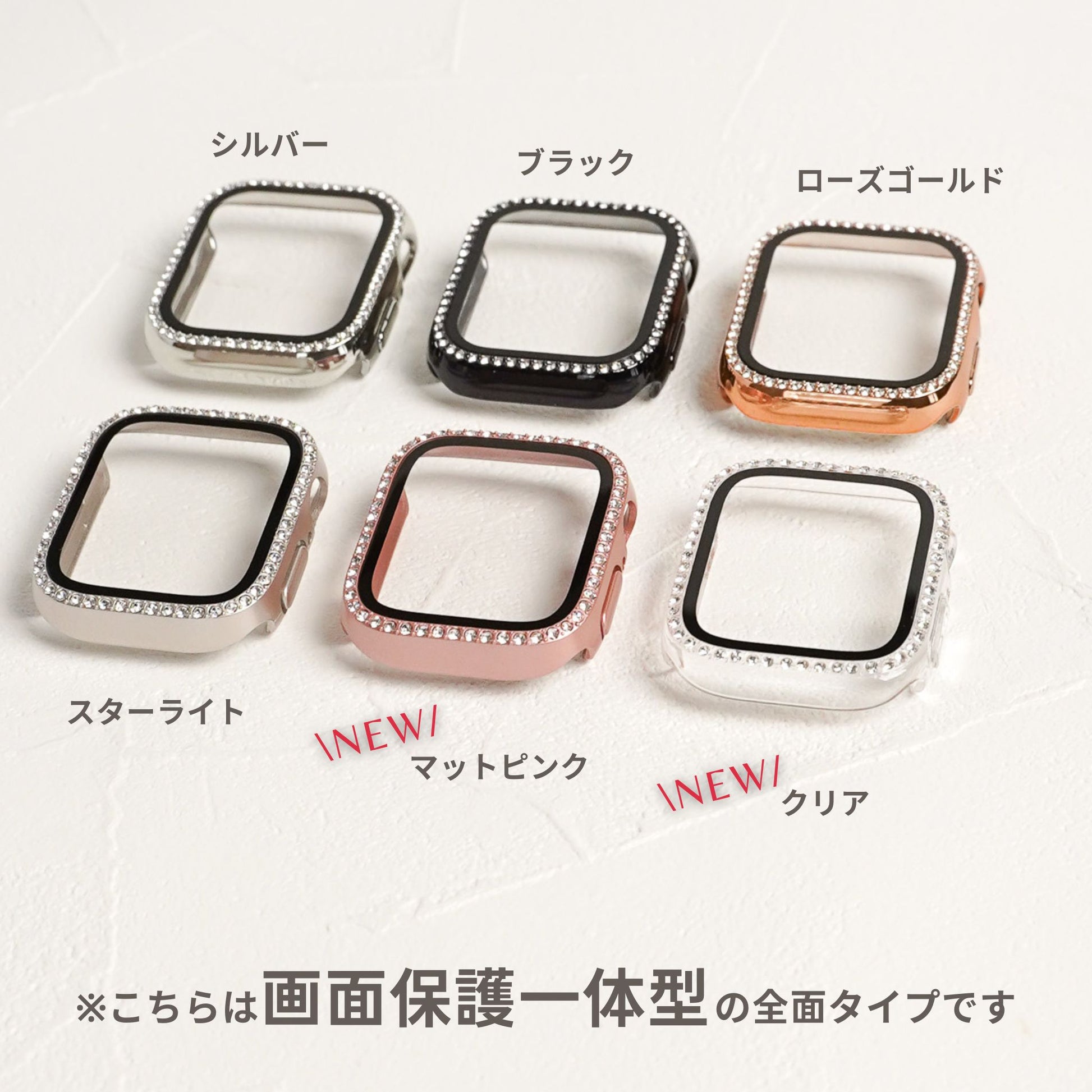 キラキラ ストーン1列 全面 保護カバー ガラス付き ハードタイプ アップルウォッチ ケース Apple watch
