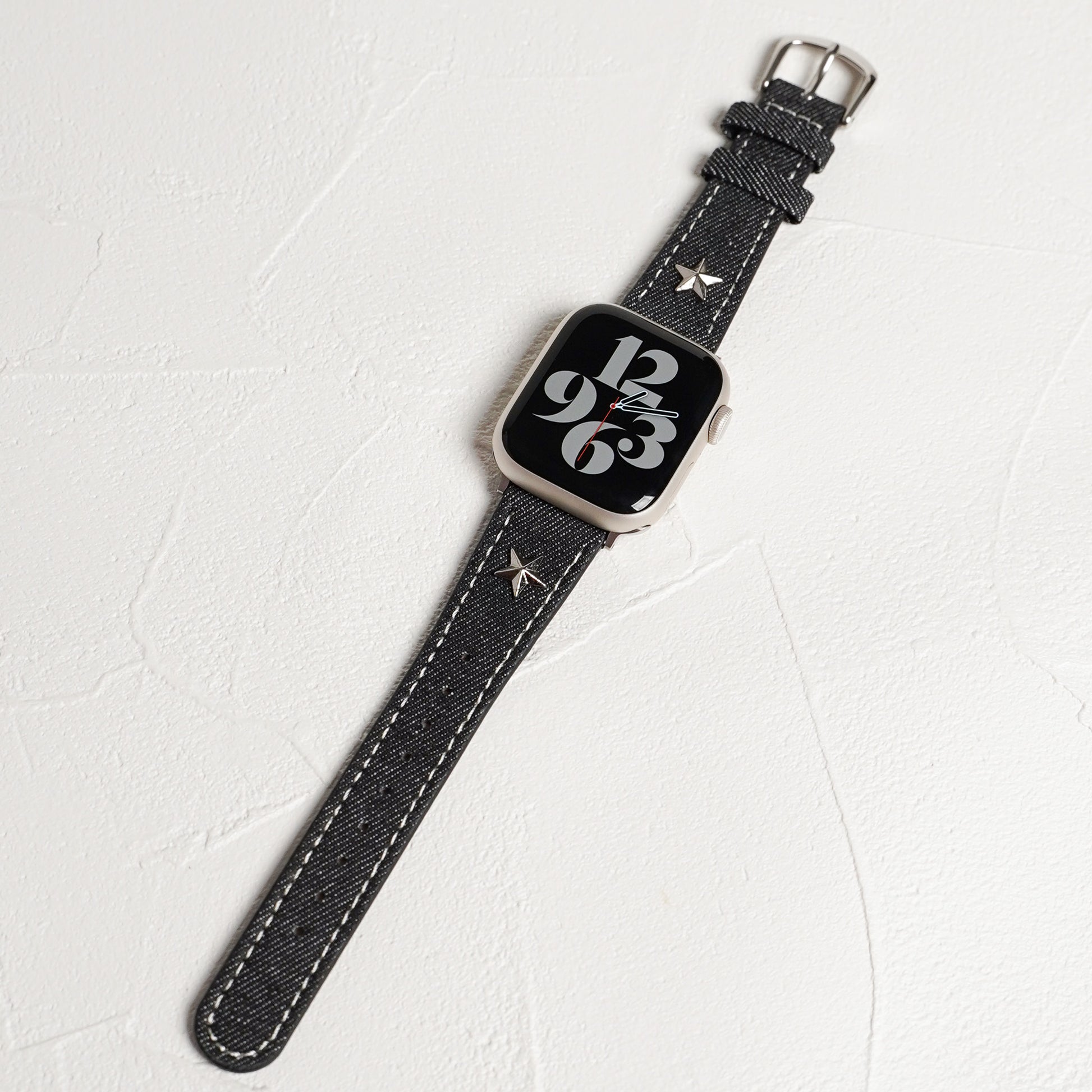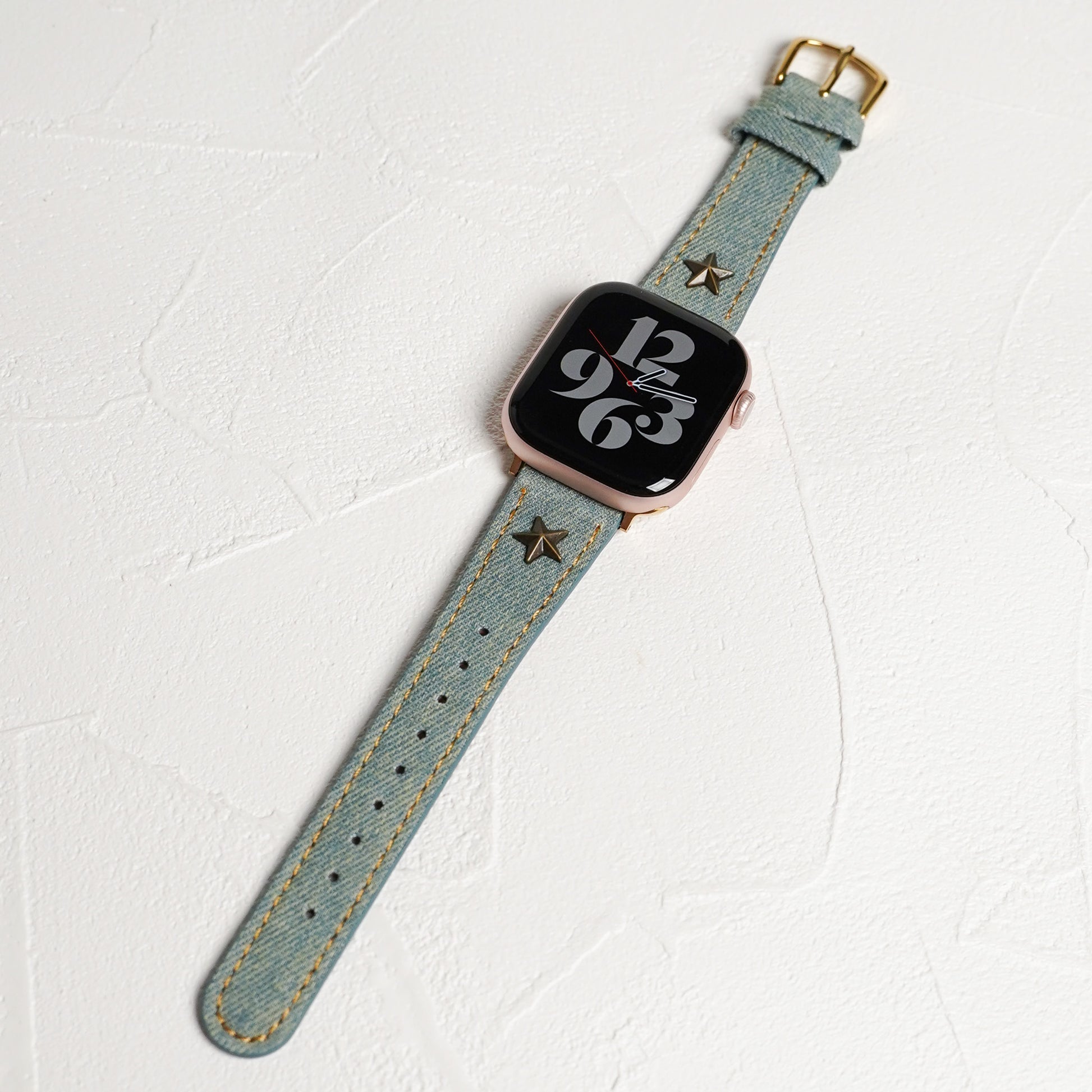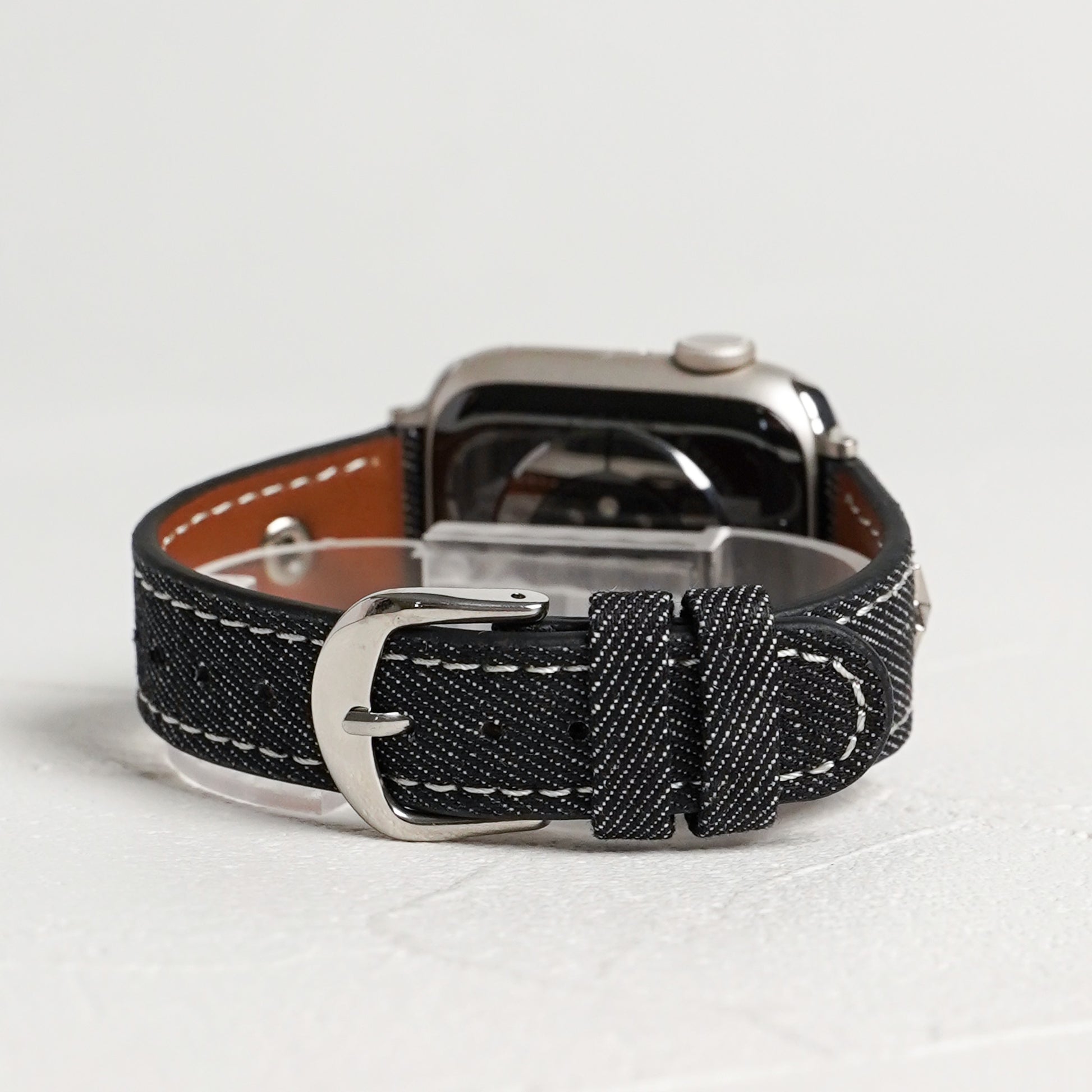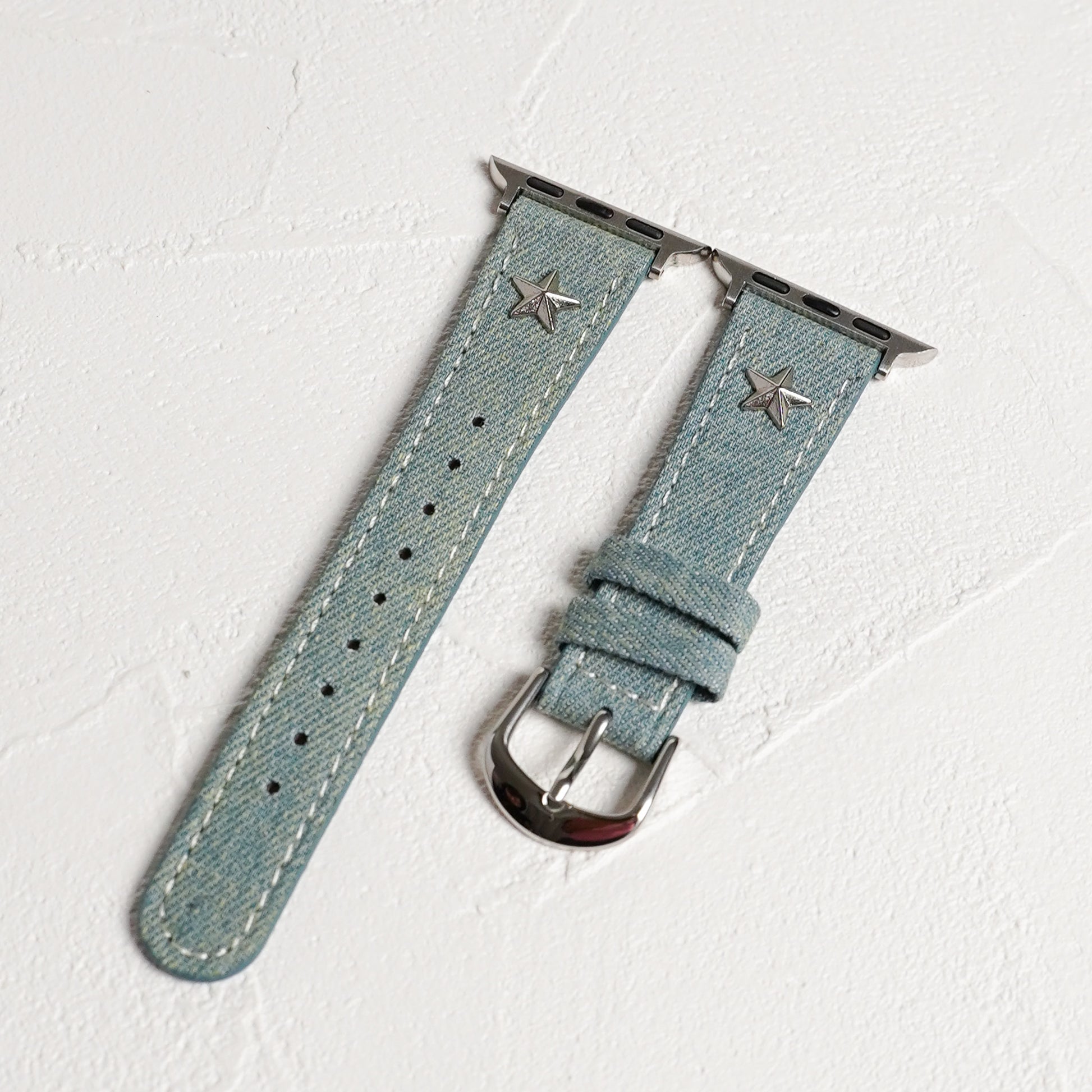デニムレザーにスタッズがポイントになったアップルウォッチバンドです。