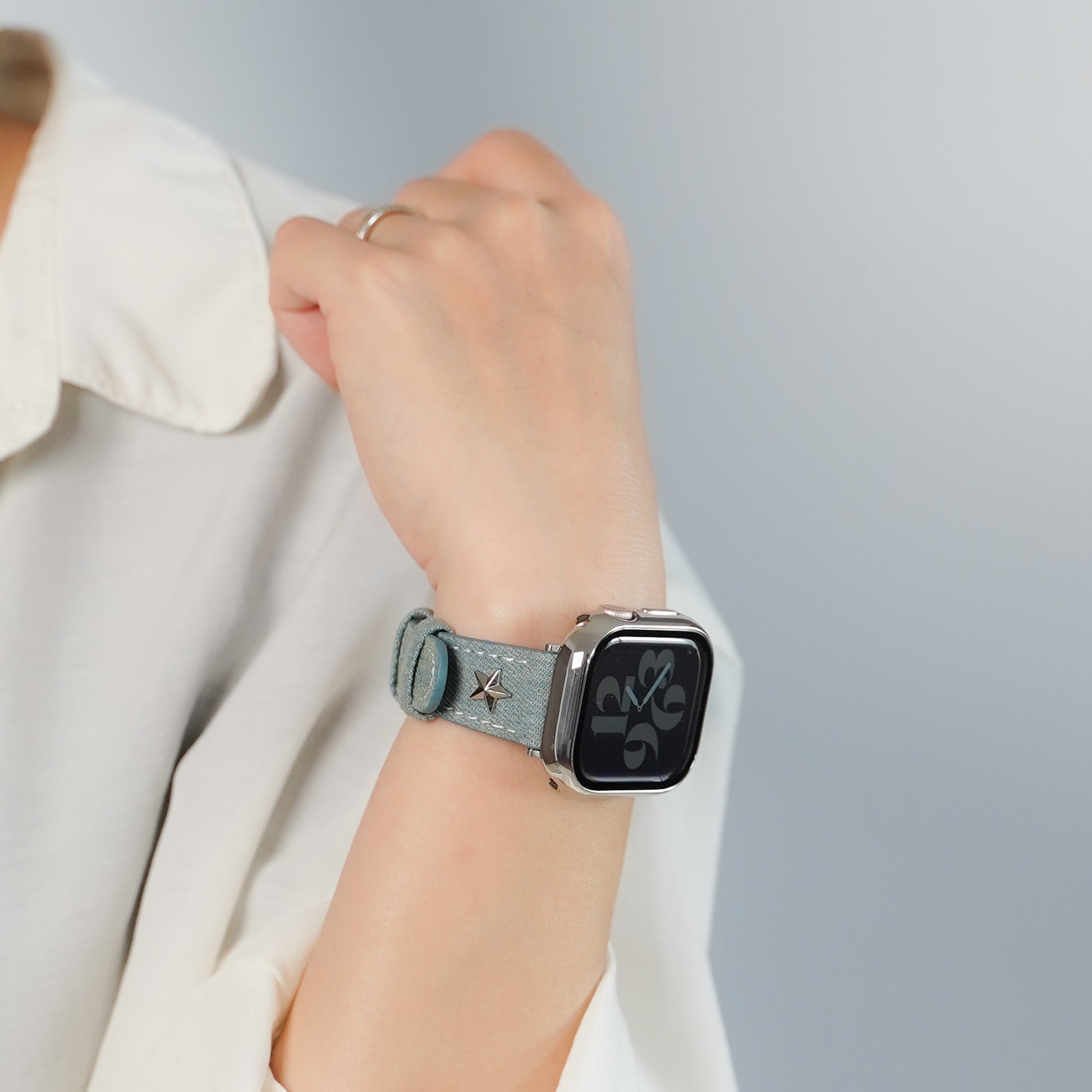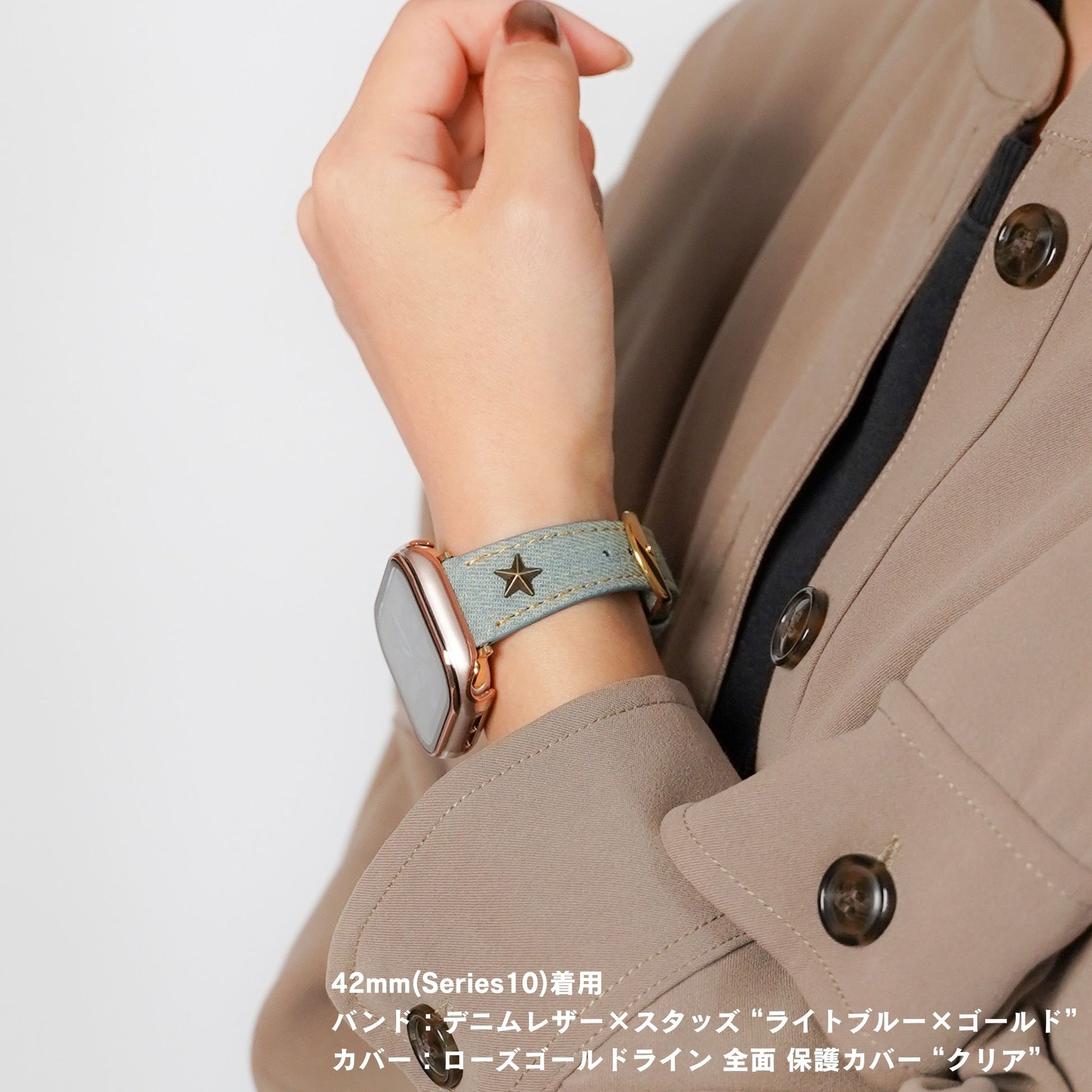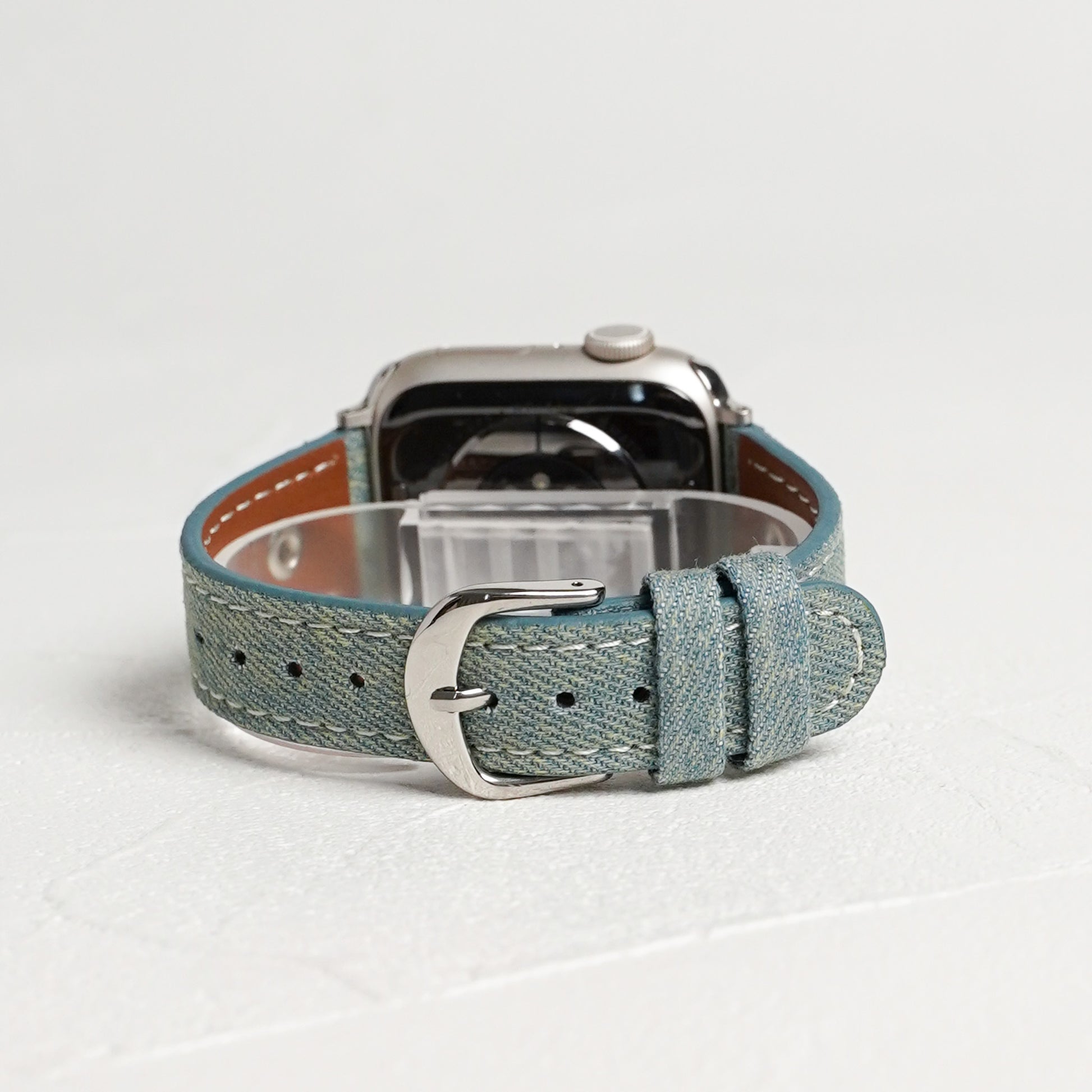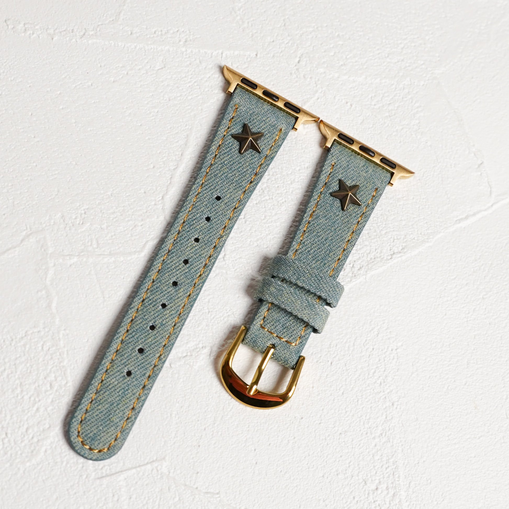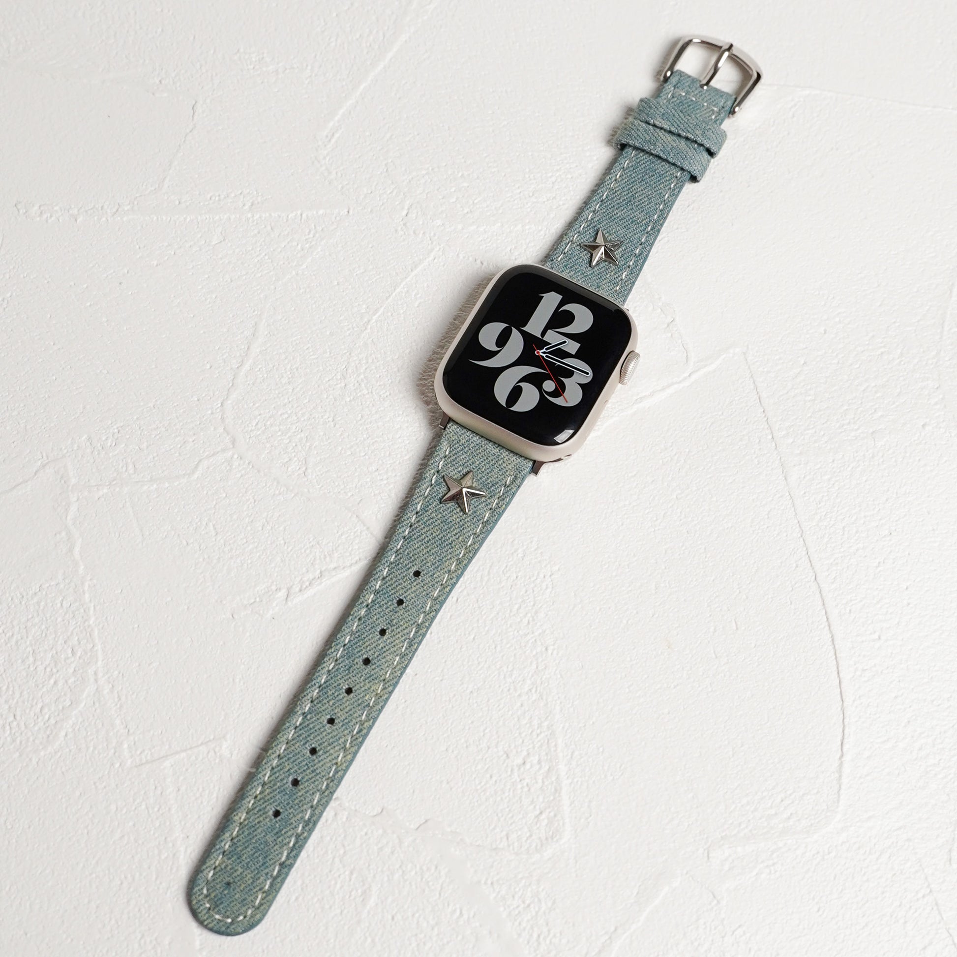 デニムレザーにスタッズがポイントになったアップルウォッチバンドです。