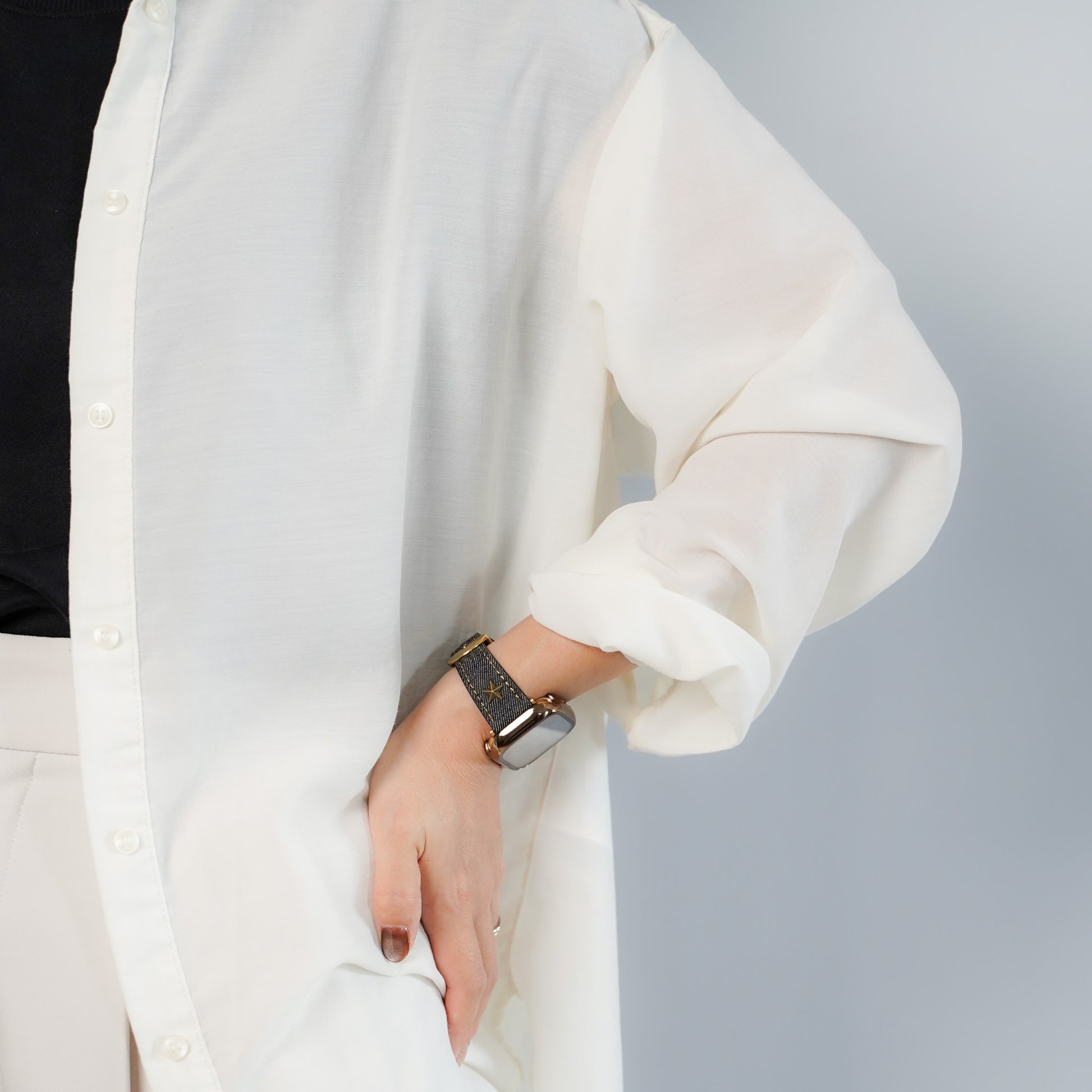 デニム地に星型のスタッズで個性が光るカジュアルバンド。