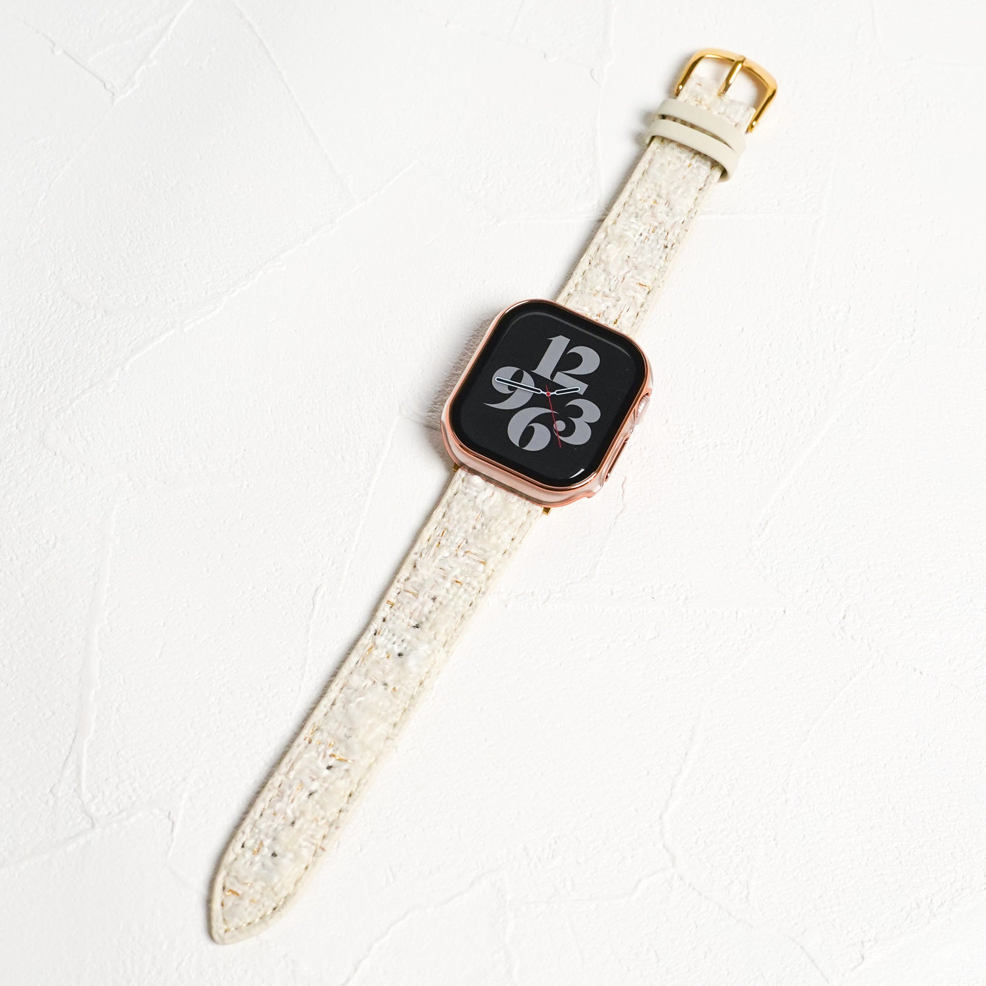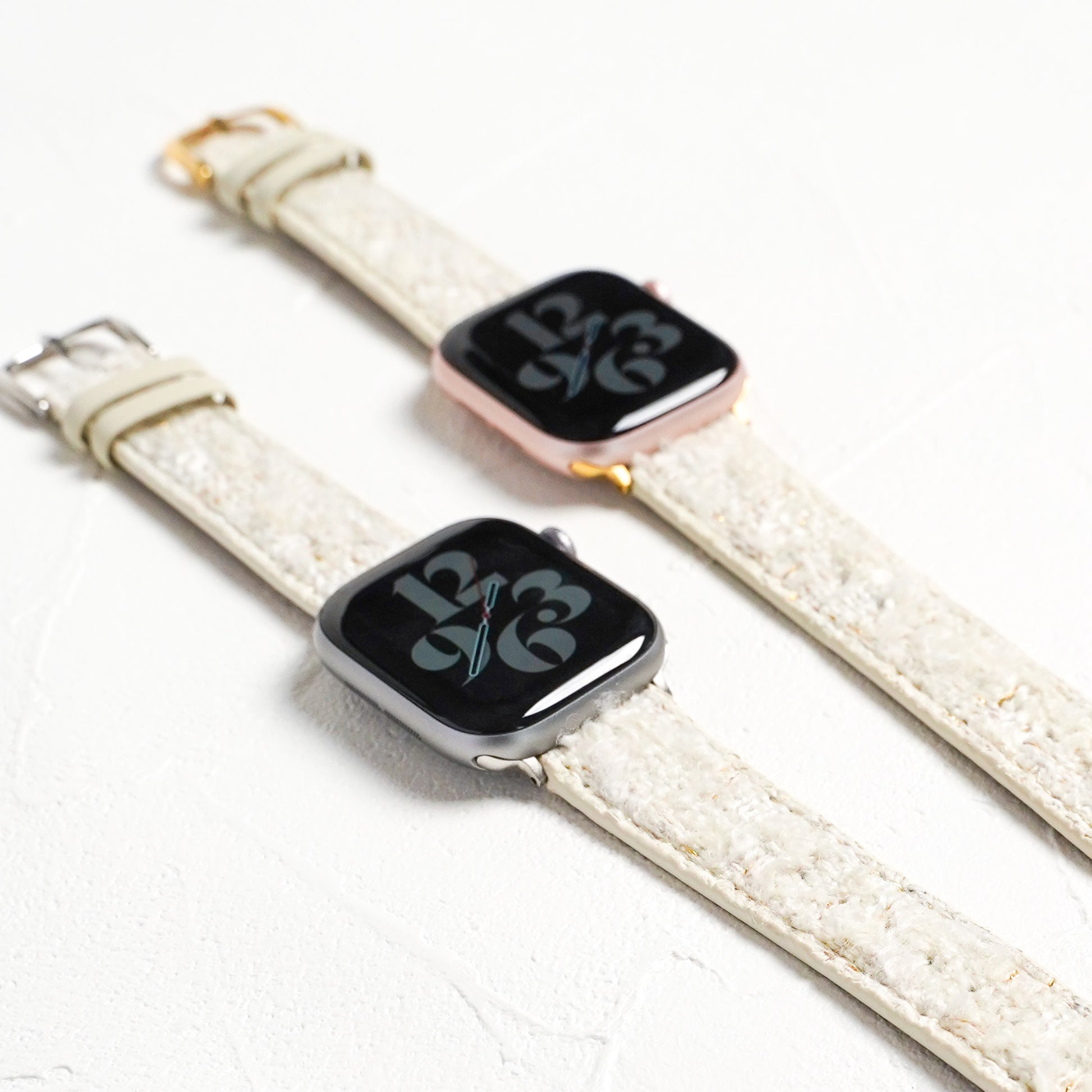 【NEW】ホワイトツイード レザー アップルウォッチバンド Apple Watch ベルト