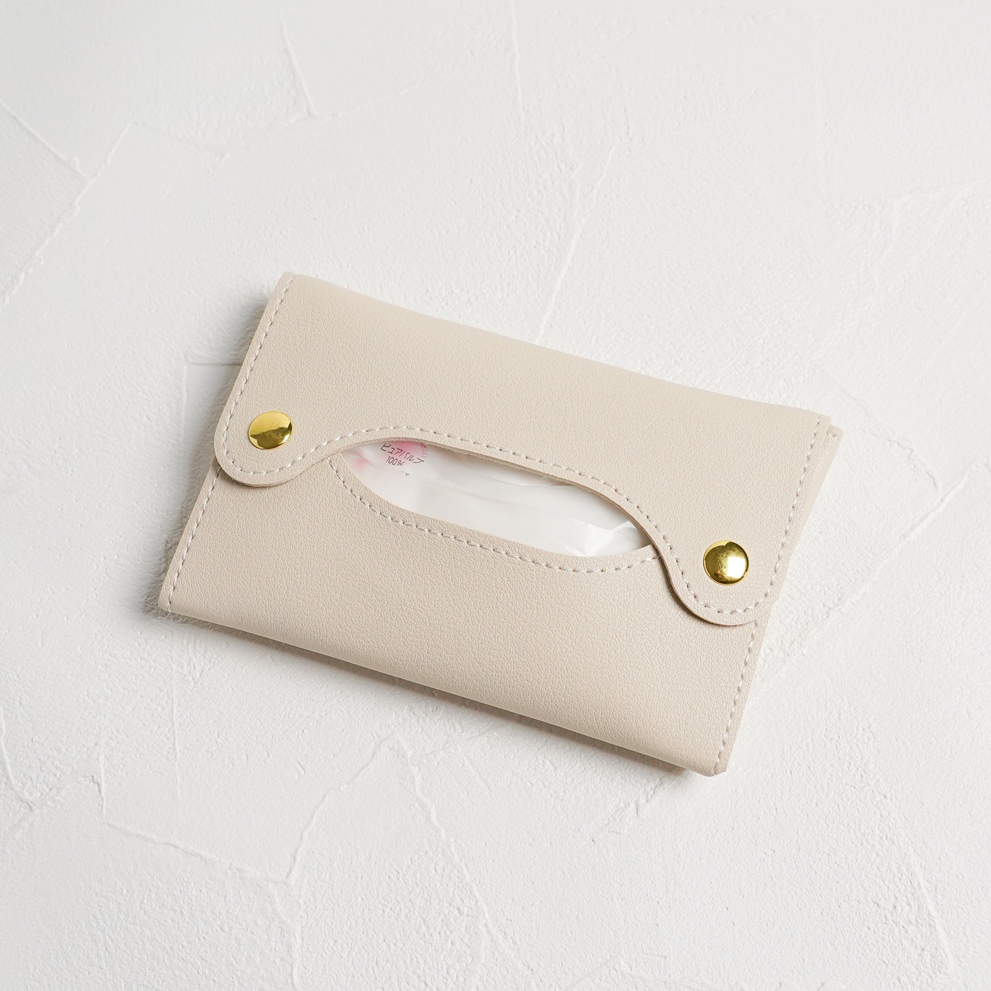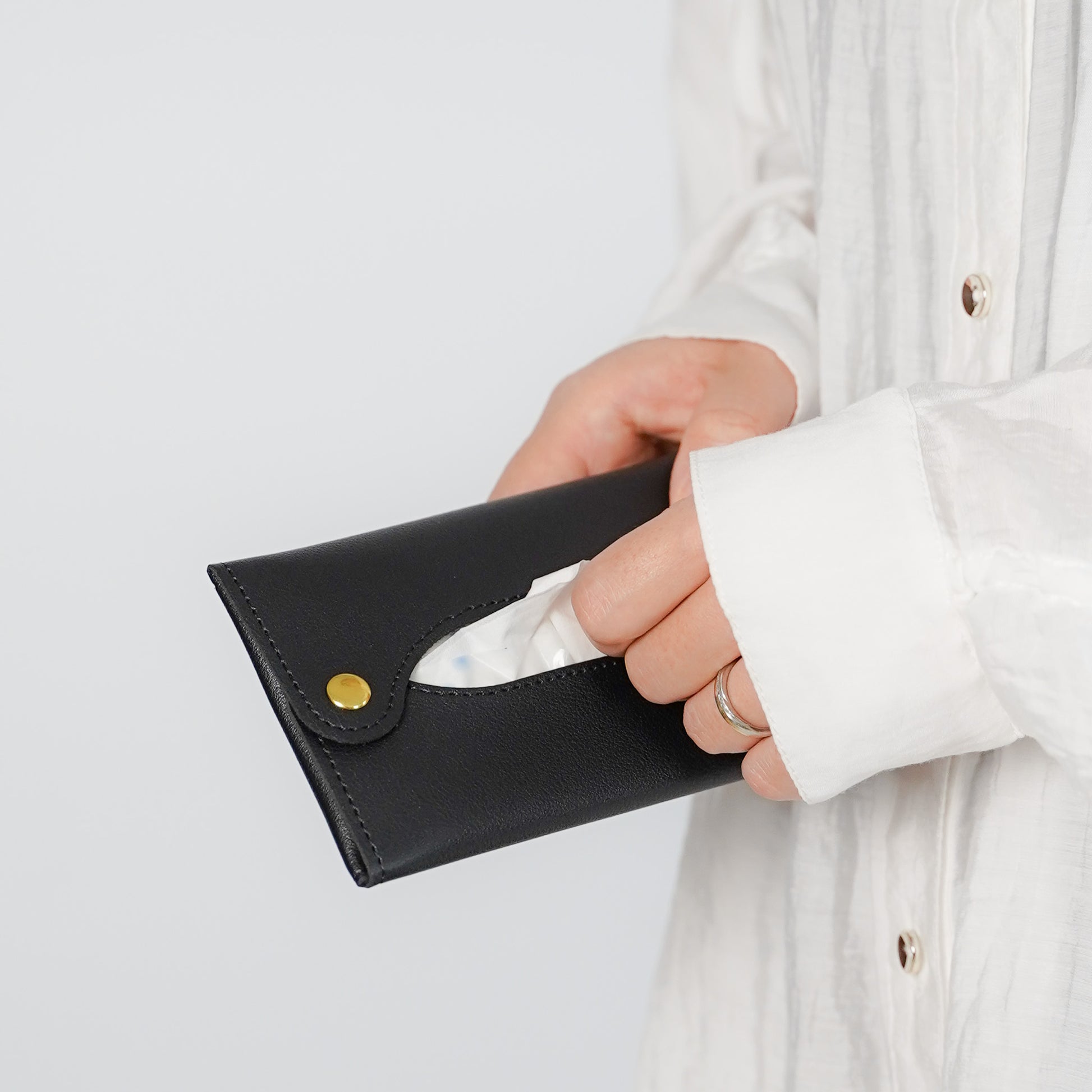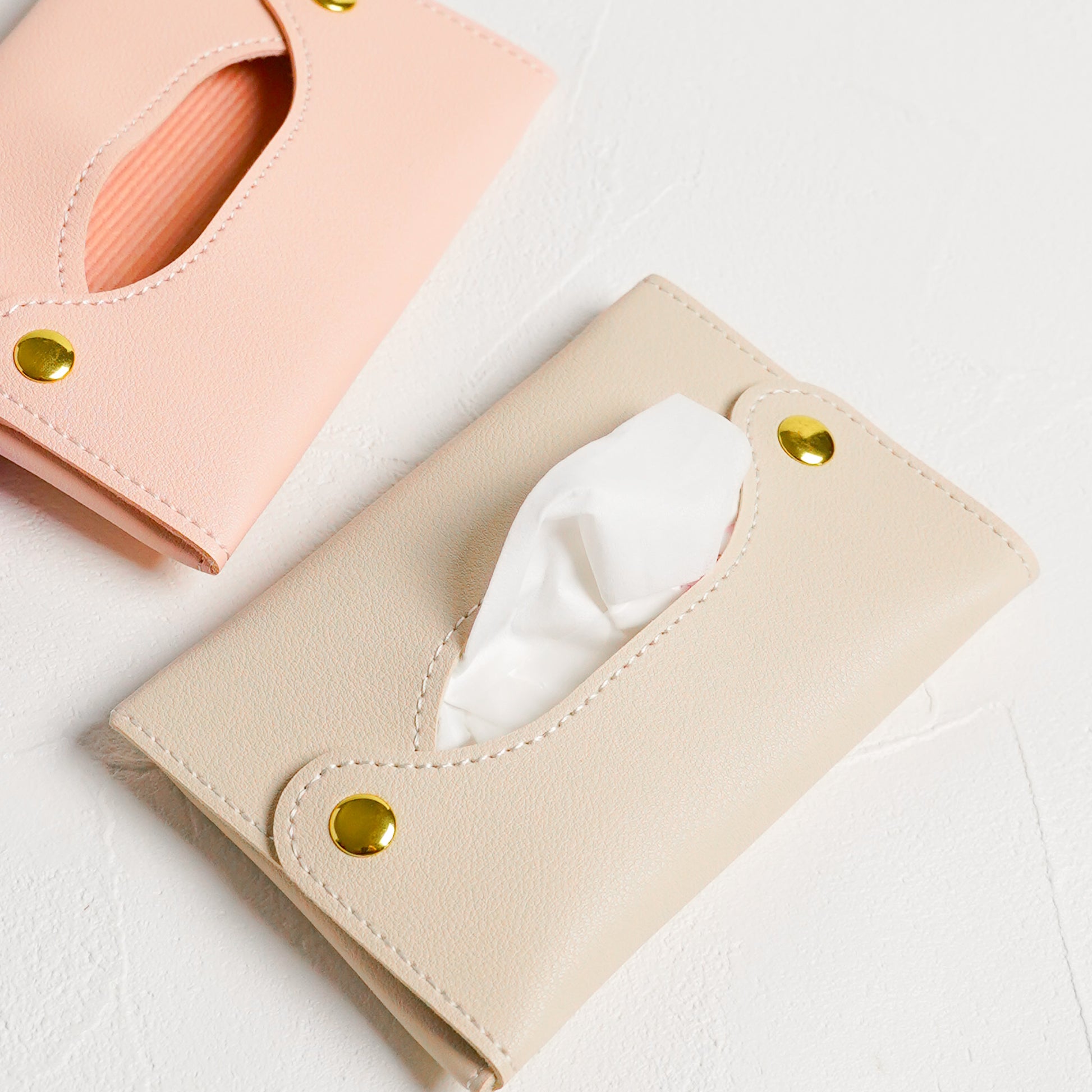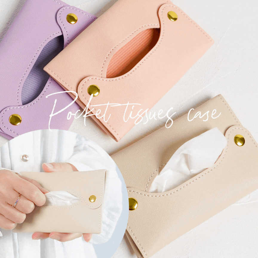 柔らかなPUレザー素材を使った、ポケットティッシュ専用カバーです。